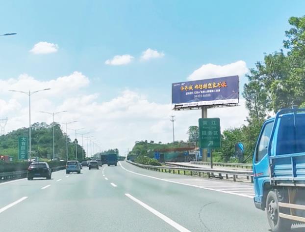 地理位置:莞深高速黃江服務(wù)區(qū)東莞方向雙面立柱廣告牌(樁號(hào)K35+900)