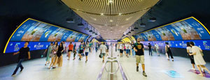 | 上海地鐵廣告-電子媒體--炫動畫墻 位于人民廣場換乘通道兩側,全天候高客流量 2塊PDP+墻貼、3塊PDP+墻貼及5塊PDP+墻貼,形式豐富多樣 屏幕高清巨大,畫面生動,支持動畫形式,極具震撼效果的電子長廊 |