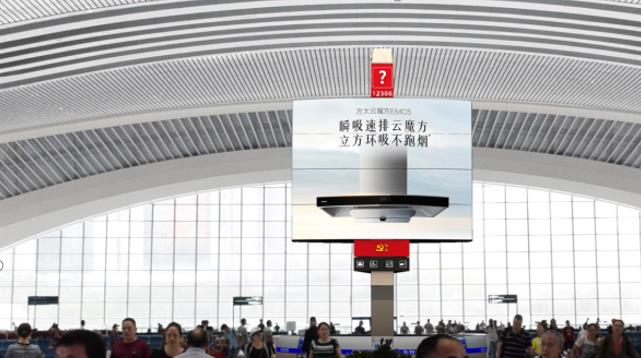 | 重慶西站出發-候車廳綜合服務島翼展屏(D70) 媒體區域:重慶西站候車廳 媒體數量:1個 媒體尺寸:6.4mX5.12mX2面 媒體材質:360度旋轉LED屏 亮屏時間: 05:00-22:30(17.5H) 候車廳中軸線上,媒體高大,視線焦點 候車廳服務臺中心媒體,乘客注意中心,100%覆蓋重慶北站出發人群 創新旋轉屏,是廣告,更是風景線 |