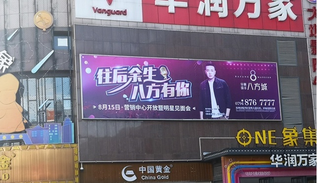 此廣告位于恒大華潤萬家店外立面戶外大牌,固定噴繪畫面,撫州新區(qū)中心,恒大御府,學府天城,碩豐天城,與撫八線相連,人車流量大,廣告效果好