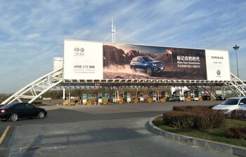 廣告位置:機場停車場收費站出入口 正迎面 廣告編號:SY-LM03 廣告規格:10m×60m×2面=1200m2 數量:1 廣告形式:收費站龍門 媒體價格:1360萬元/年/座 |
