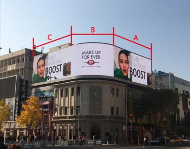 播放時(shí)間8:00 - 22:00;媒體規(guī)格:15.68米(寬) x 12.85米(高)=201平方米