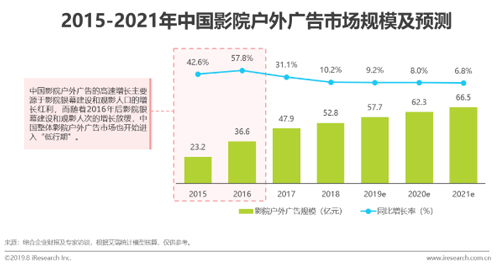 根據艾瑞咨詢數據顯示,2018年中國影院戶外廣告市場規(guī)模達52.8億元,同比增長率為10.2%。中國影院戶外廣告市場將逐漸進入增長放緩的“低行期”。隨著院線的收縮與整合,以及影院建設的結構調整,未來一線城市頭部影院銀幕資源將愈發(fā)稀缺,影院戶外媒體公司競爭壓力變大。一方面,頭部影院資源將成為戶外媒體公司的核心競爭壁壘,另一方面,四五線城市將為影院廣告市場提供更多新的發(fā)展機會。