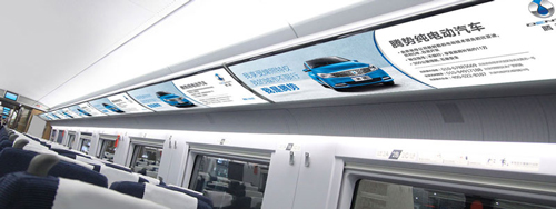位于所有高鐵車廂內行李架下方,對稱發布,氣勢磅礴,視覺沖擊力強,無論坐、立、行,都能有絕佳的視覺效果,利于品牌整體性展示。